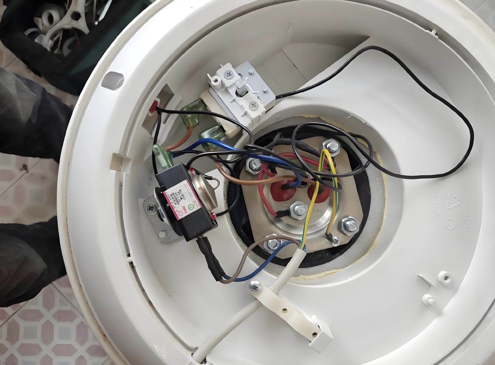 (5)因使用時(shí)間一長(zhǎng),有異物堵住氣嘴口,導(dǎo)致壓力無(wú)法傳到壓力開(kāi)關(guān),此時(shí)應(yīng)擰下大螺母,然后拿出內(nèi)桶,把堵住氣嘴的異物取出。